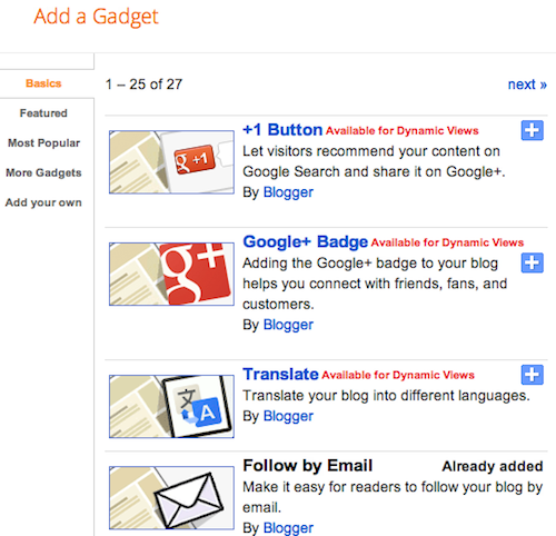 - Untuk menambahkan gadget baru setelah Anda mengklik Add Gadget, cukup klik tanda plus di samping gadget yang Anda inginkan. Anda dapat memilih dari gadget menurut kategori, atau mencari gadget tertentu di bagian kanan atas dari jendela pop-up.
